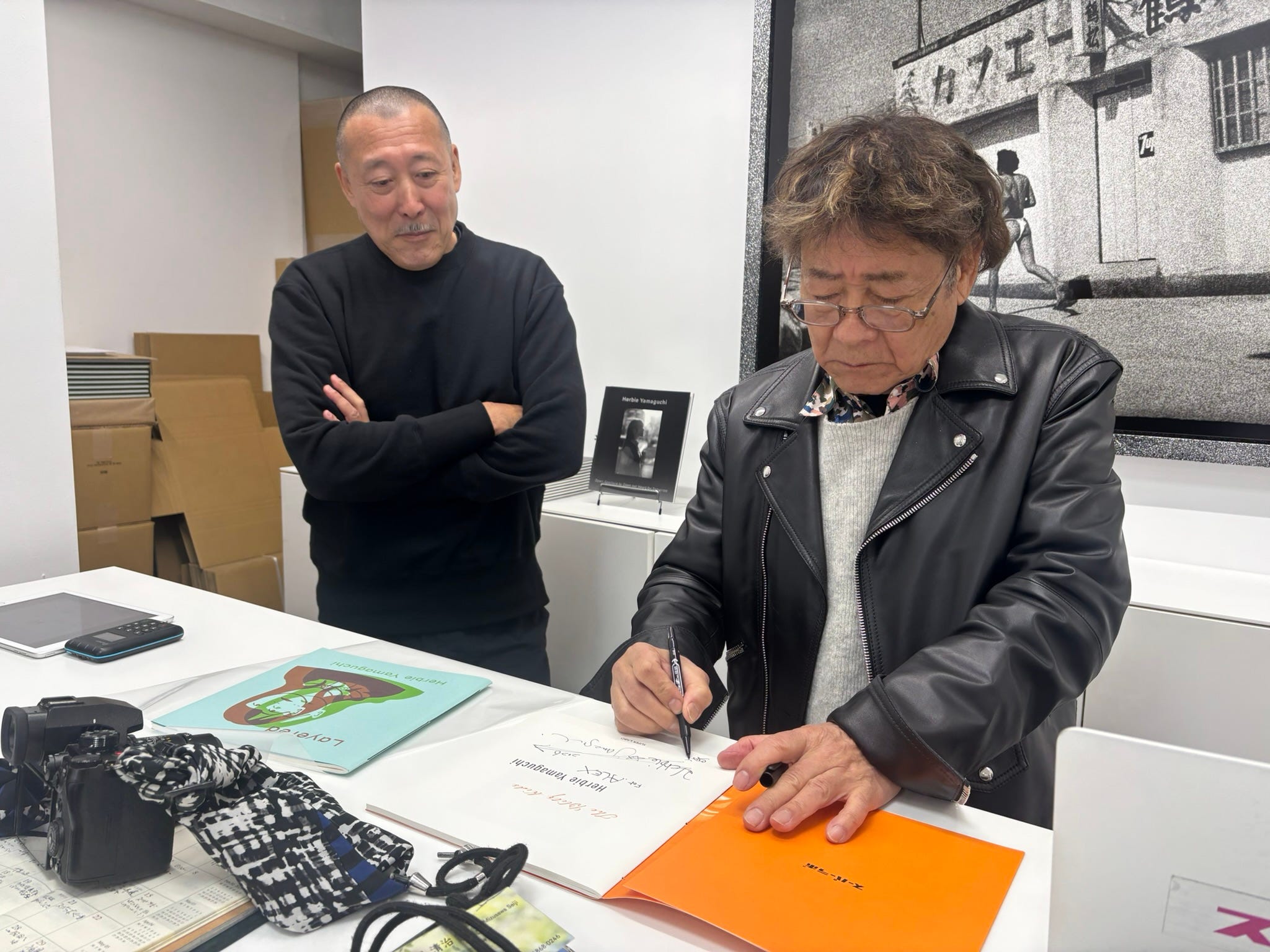 Here are a few pictures from yesterday and today (Saturday) - the highlight so far has to be meeting Yasunori Hoki, the legendary founder of publisher, Super Labo. I met him yesterday and he asked me to come back today because Herbie Yamaguchi was holding an ‘event’ at Super Labo. I turned up this afternooin just in time to hear Herbie’s friend, a professional singer, whose name I didn’t catch, give an imprompu performance at Herbie’s request. This sums up the spirit of photography in Japan.
